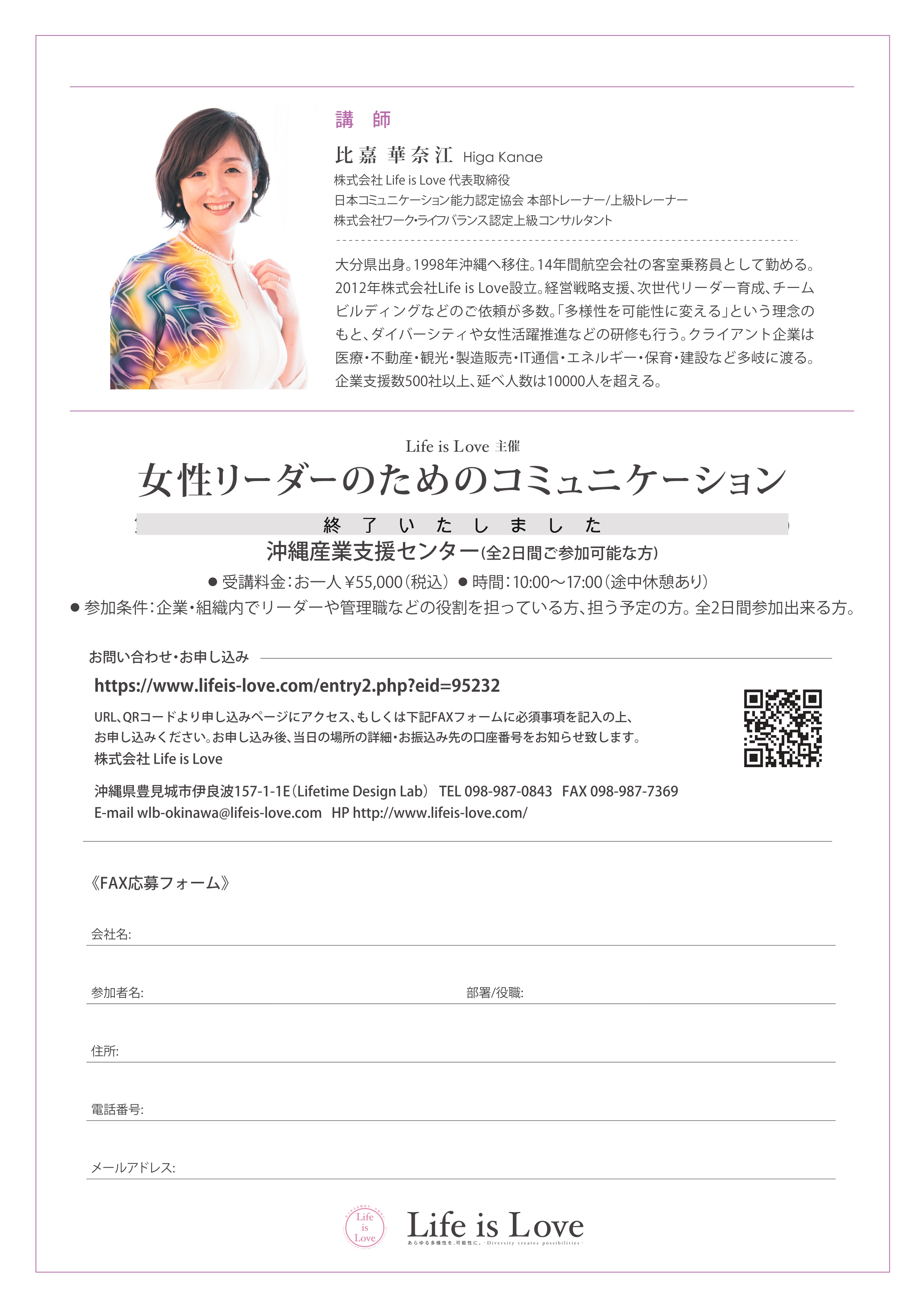 【講師】株式会社Life is Love 代表取締役 比嘉 華奈江