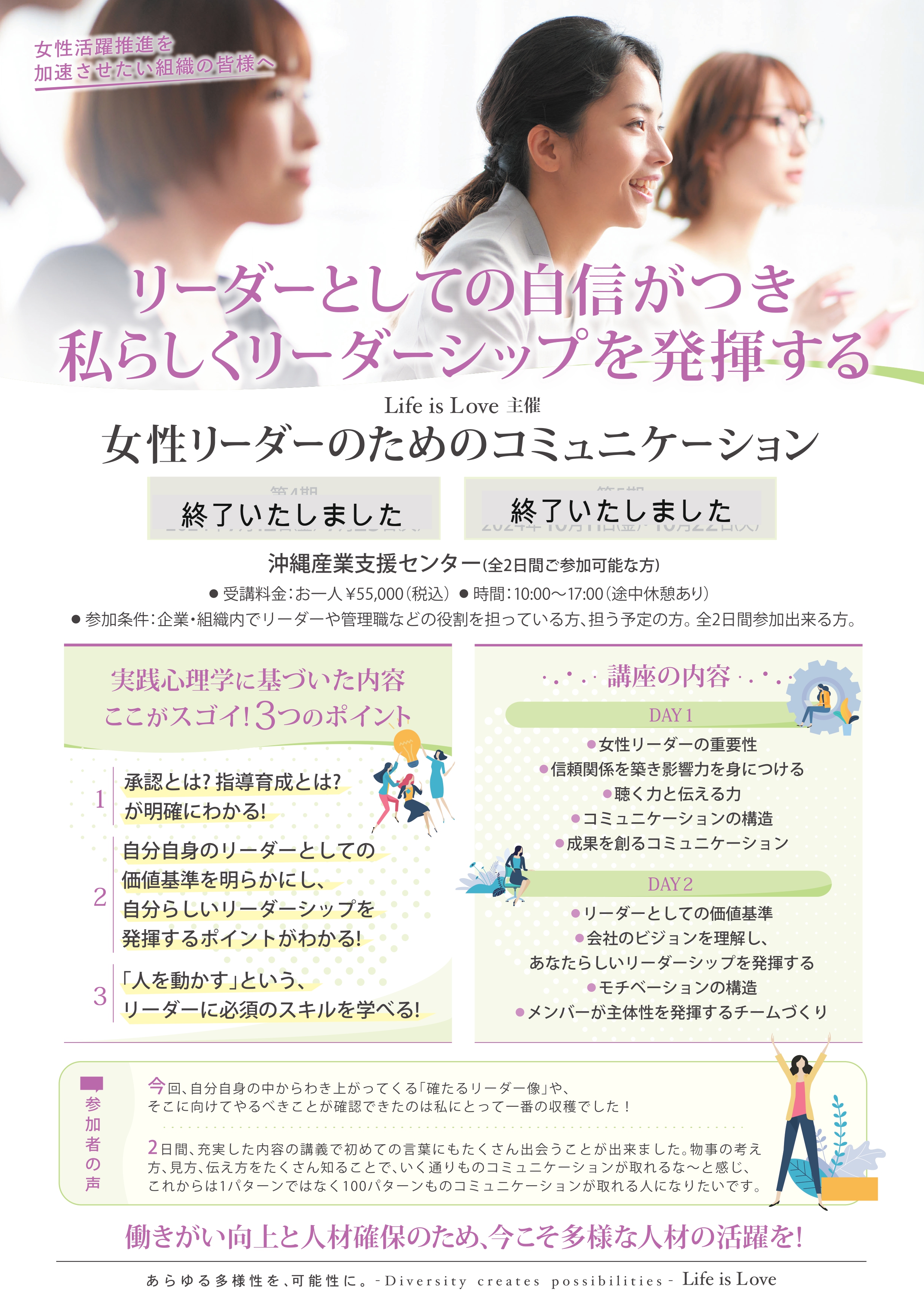 多くの女性リーダーに受講していただきたい!